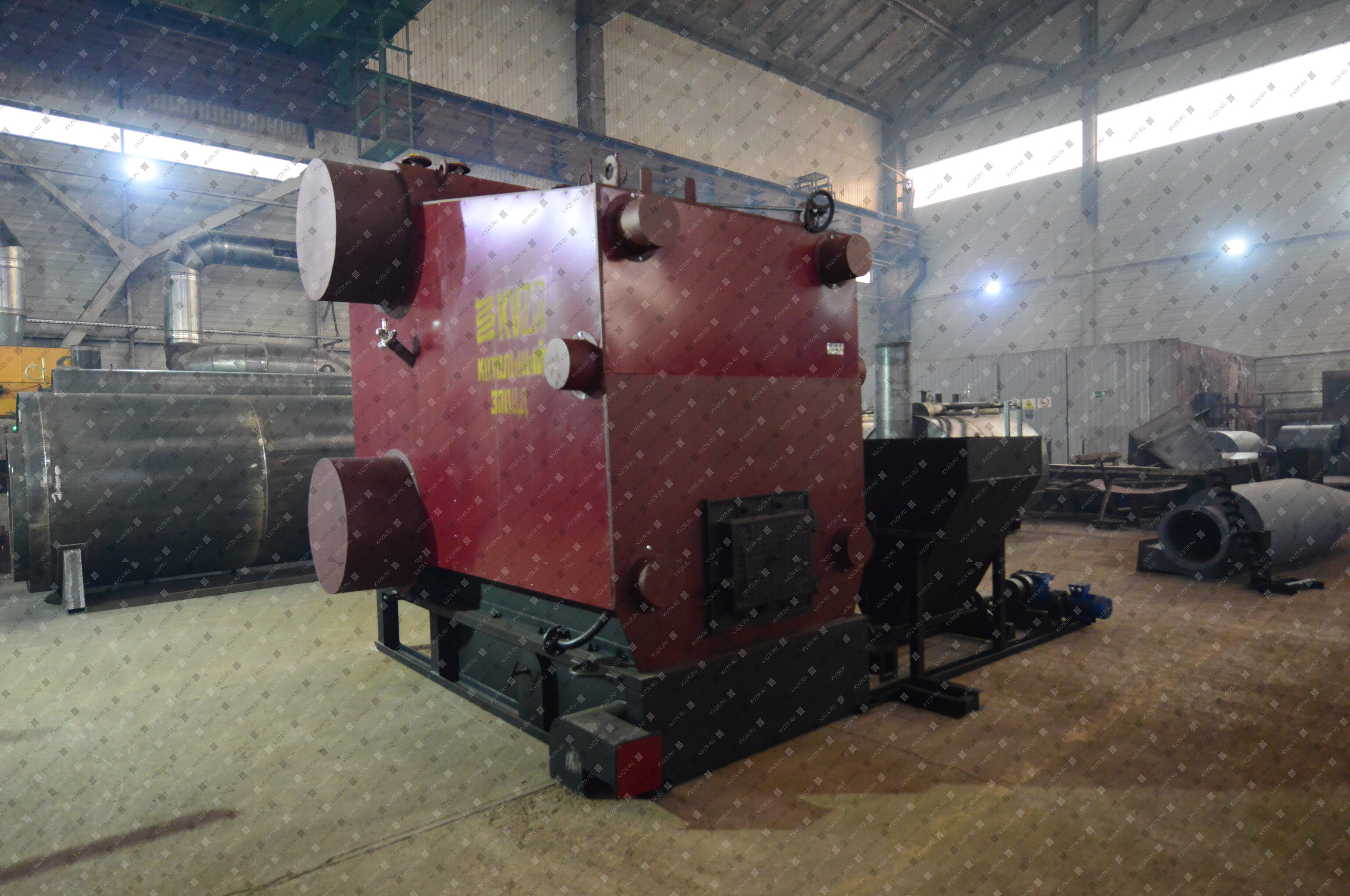 Паровой котел Е 1-9 барабанного типа, производительность 1 т пара в час, температура пара не более 170 С°, давление пара 0.9 МПа (9 кгс/см², тепловая мощность 0.74 МВт (740 КВт), топливо - уголь. Применяется для технологических целей в производстве.